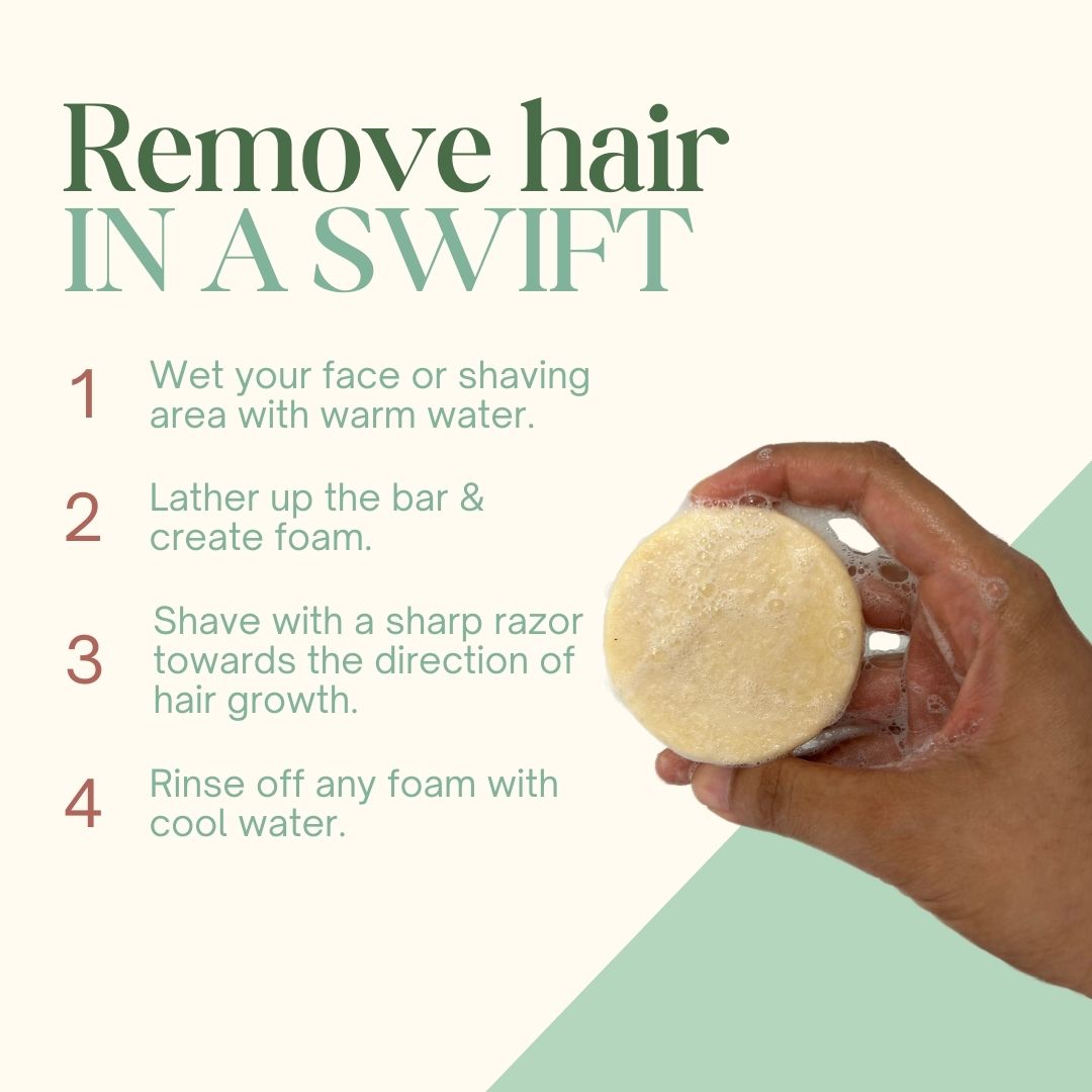 Wet the shaving bar and rub it gently between your palms or directly onto your face to create a rich lather.