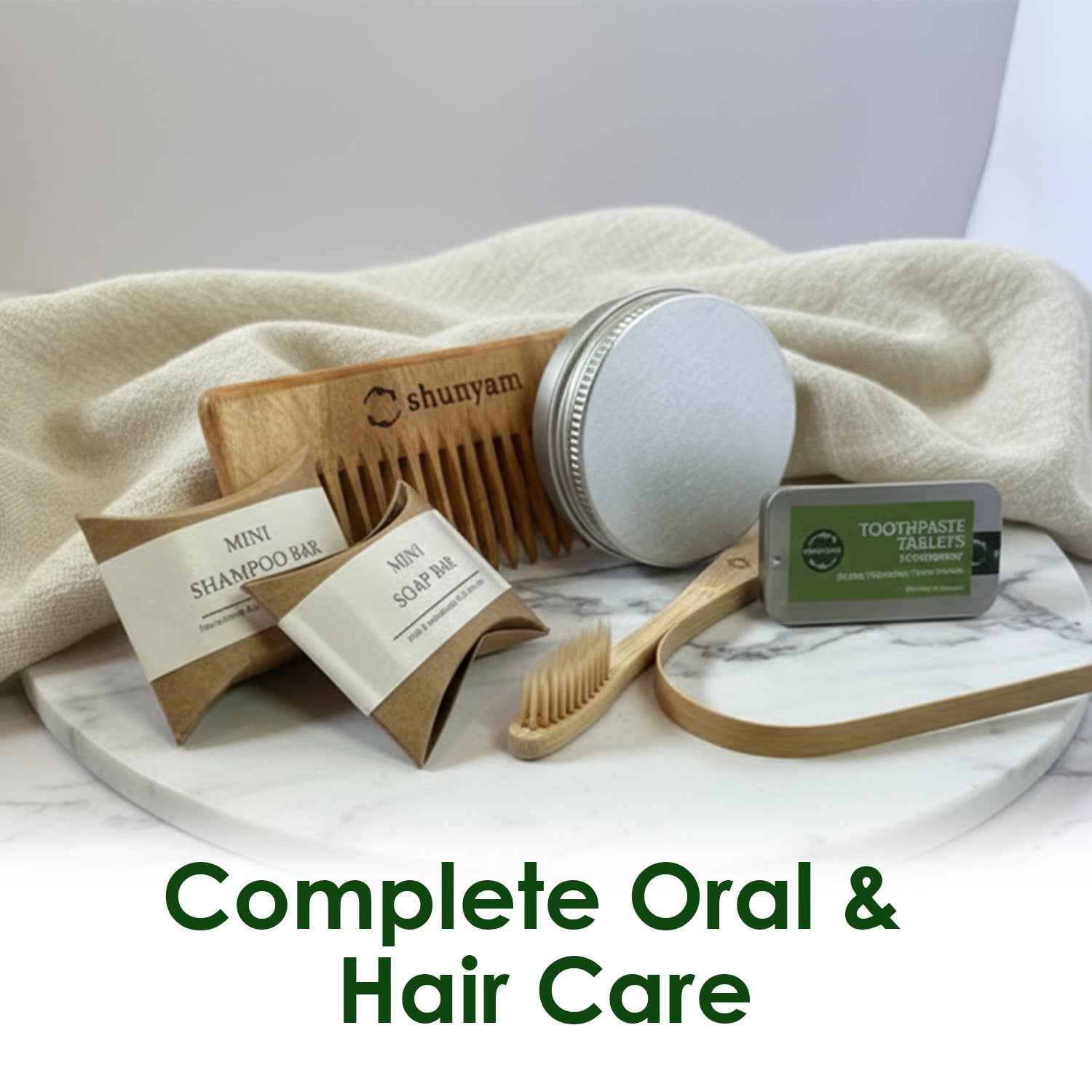 Wherever you go, take sustainability with you. The Shunyam Travel Kit is a thoughtfully packed set of everyday personal care must-haves—perfect for vacations, work trips, or even the gym. Compact, eco-friendly, and travel-tested, it keeps your routine clean and low-waste on the move.